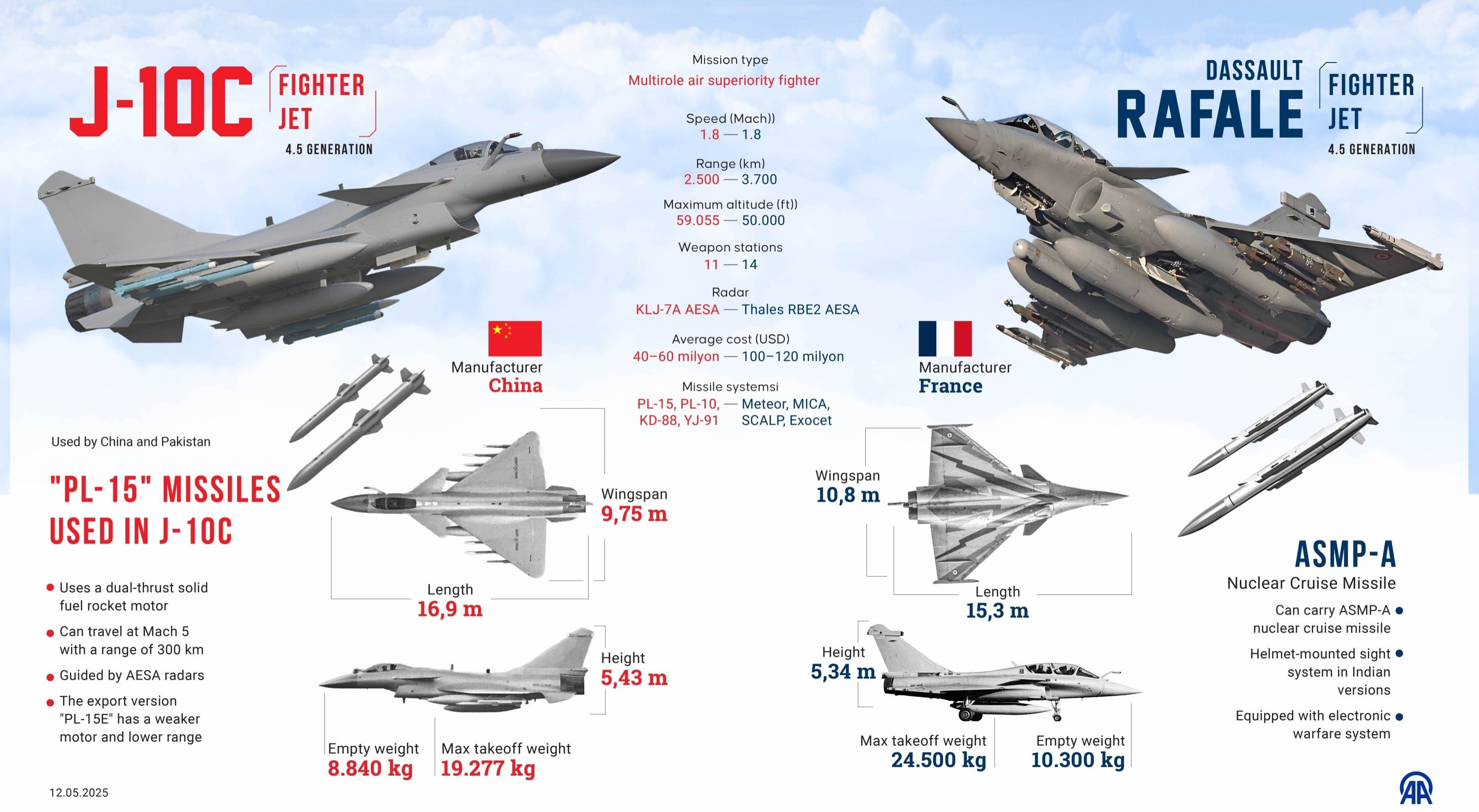 An infographic detailing the comparative specifications of the Chengdu J-10C and the Dassault Rafale. Image source