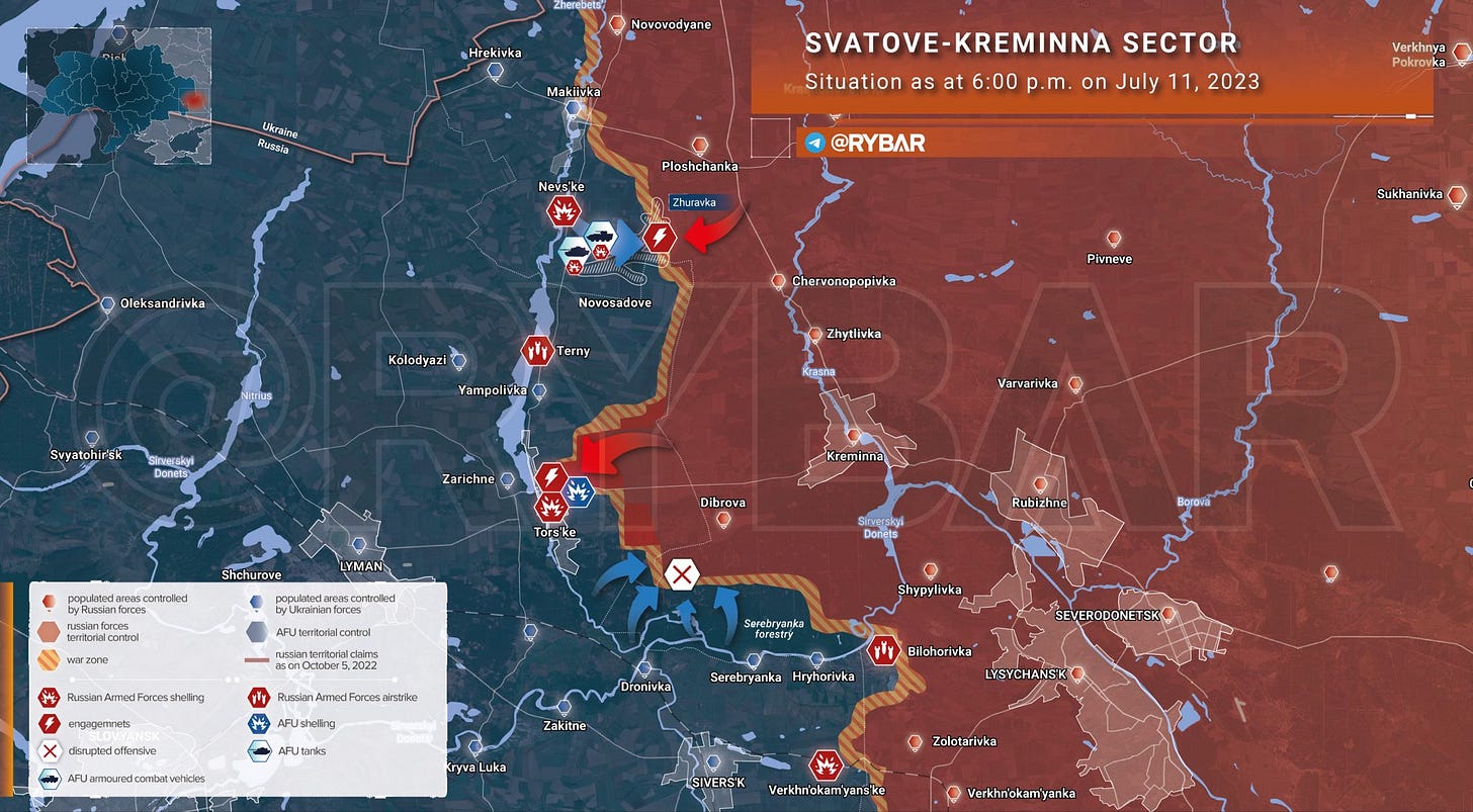 Very little coming from Ukrainian sources on this topic and Russian sources are saying their forces may have advanced up to 3km towards the town of Torske.
